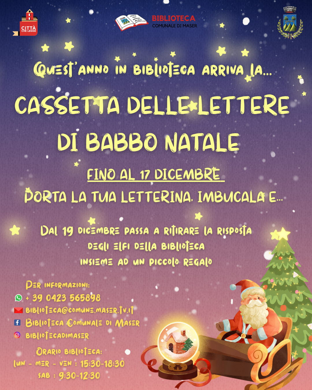 Fino al 17 dicembre porta la tua letterina, imbucala e...dal 19 dicembre passa a ritirare la risposta degli elfi della biblioteca insieme ad un piccolo regalo!